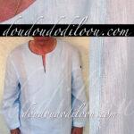 Les bords de la chemise et du plastron sont juste surfilés, j’ai mis un biais gris bleuté pour les manches : le moins réussi de l’ensemble je trouve.