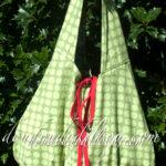 Tissu : Amy Butler pour les pois verts, Alexander Henry pour le Farmdale Blossom rouge, toto pour la bande bleu , ruban et bais de mon stock